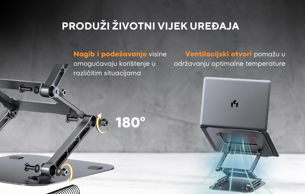 Podignite ekran laptopa na idealnu visinu, smanjujući napetost u vratu i leđima, i poboljšajte radnu udobnost.