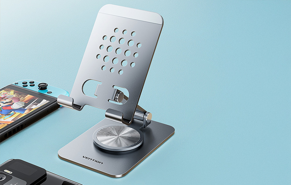 Držač Vention je čvrsto i elegantno rješenje za sve koji traže funkcionalan stalak za telefon ili tablet za svoj radni sto. Napravljen od izdržljive aluminijske legure, pruža neusporedivu udobnost i stabilnost. Sa podesivim uglom nagiba i rotacijom od 360°, omogućava vam da savršeno pozicionirate svoj uređaj, bilo da radite, gledate video zapise ili održavate video konferencije. Kompaktni dizajn s otvorima za ventilaciju omogućava efikasno odvođenje toplote, što je posebno važno tokom duže upotrebe mobilnih uređaja.